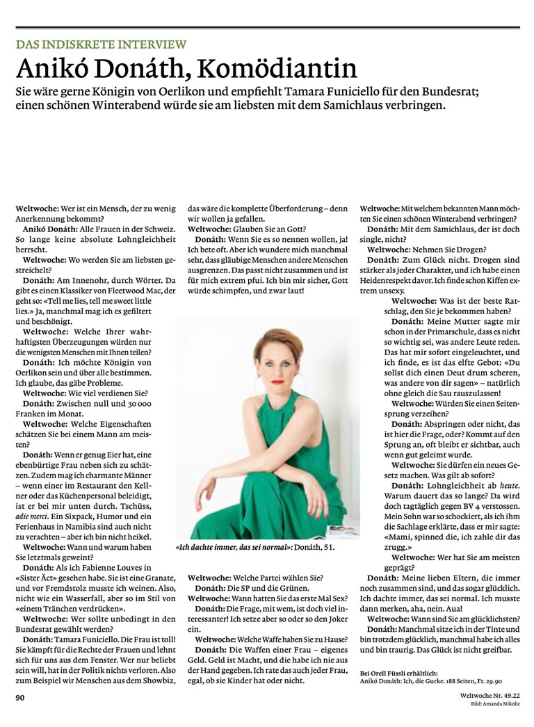 She tells horrible stories from the swiss showbiz scene